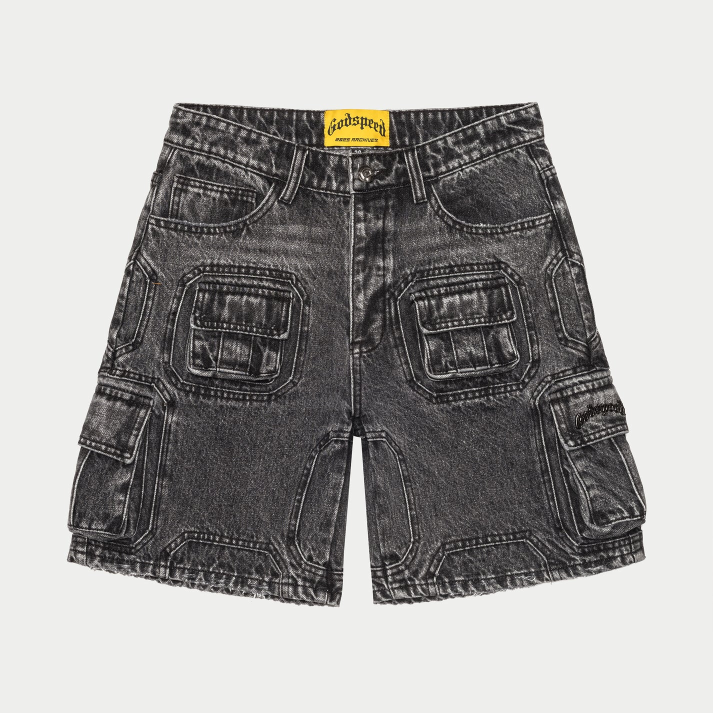 Octagon Cargo Denim Shorts (Grey Wash)