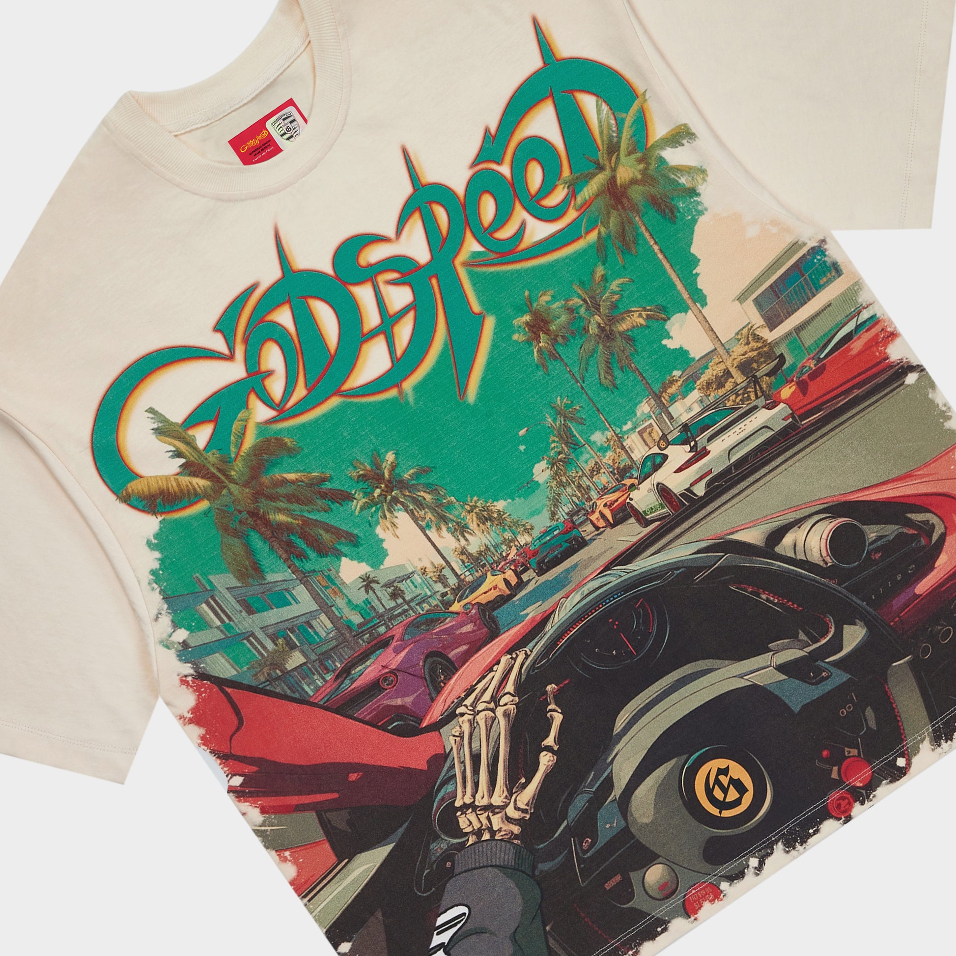 This T-Shirt is crafted from 10oz mid-weight washed fabric and features a striking art piece topped off with stones around the crown.