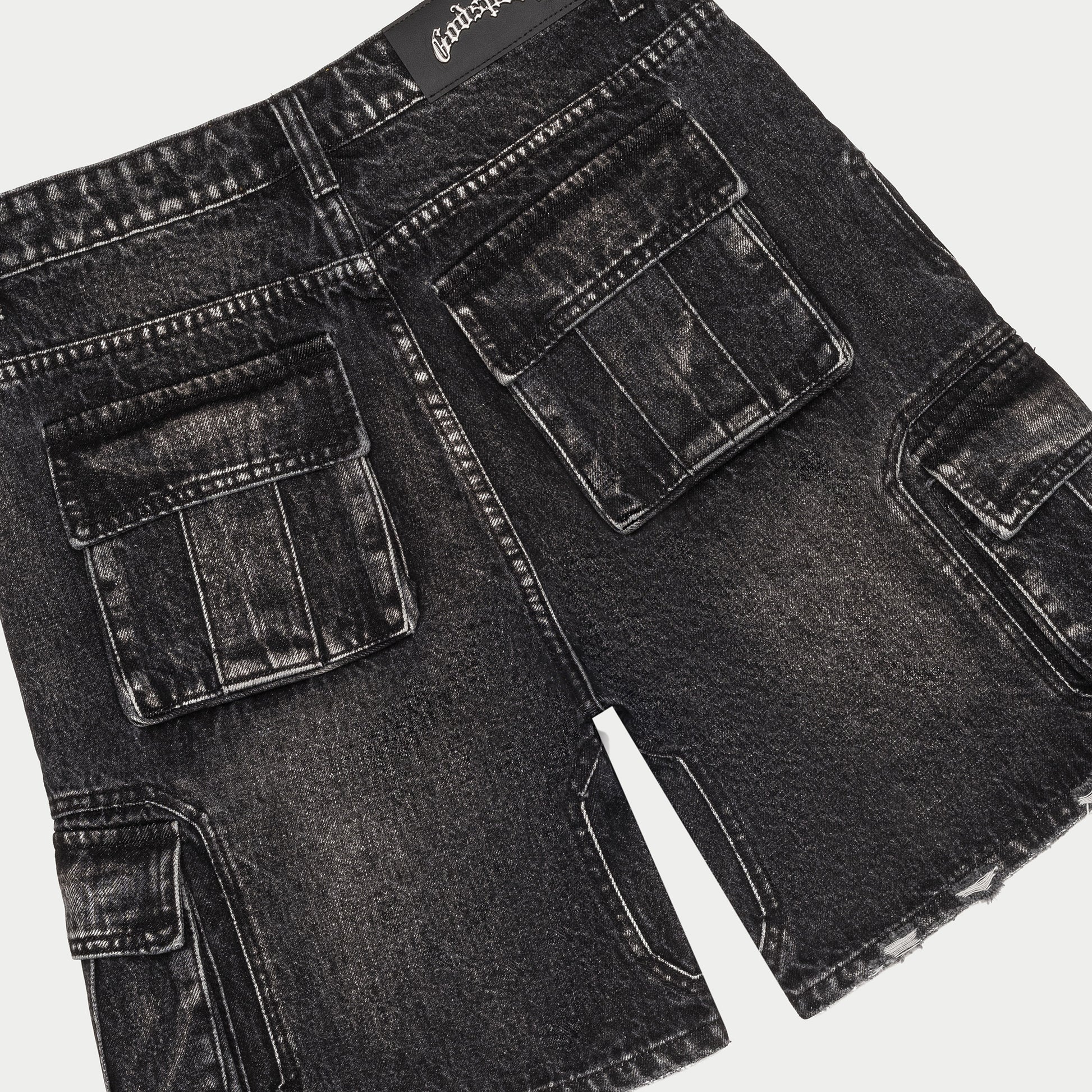 Octagon Cargo Denim Shorts (Black)